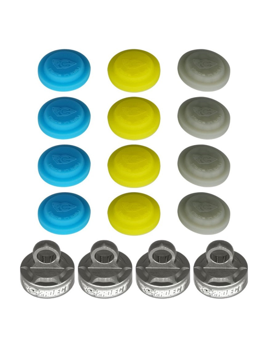 The new Shock Caps are made in Italy in Ergal 7075 T6 and then hard anodized and branded with the RC-Project Logo on the front.