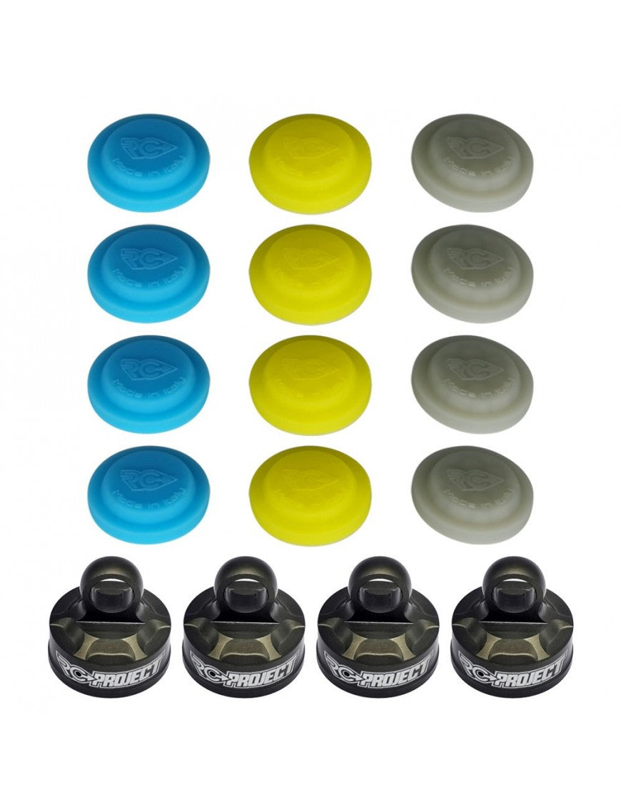 The new Shock Caps are made in Italy in Ergal 7075 T6 and then hard anodized and branded with the RC-Project Logo on the front.
